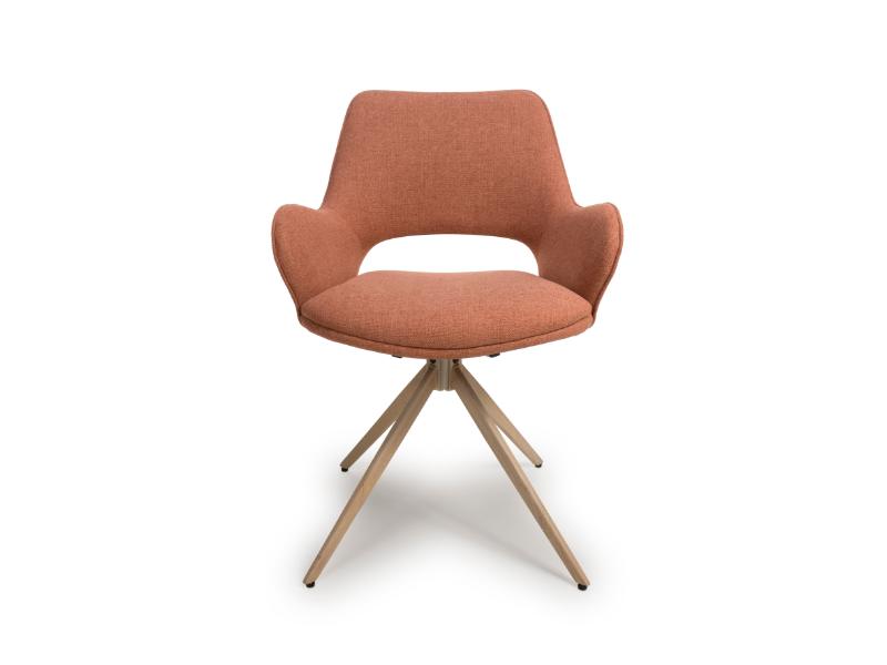 The Perth dining chairs are a must for those with a keen eye for design and detail. Cool sleek lines bring together comfort, action and strength. Dressed beautifully with an Easy Clean fabric this collection is practical too. Comfort is achieved through the gentle padding throughout these stunning chairs, Action is provided by the swivel base and strength comes from its metal base designed to look like wood.