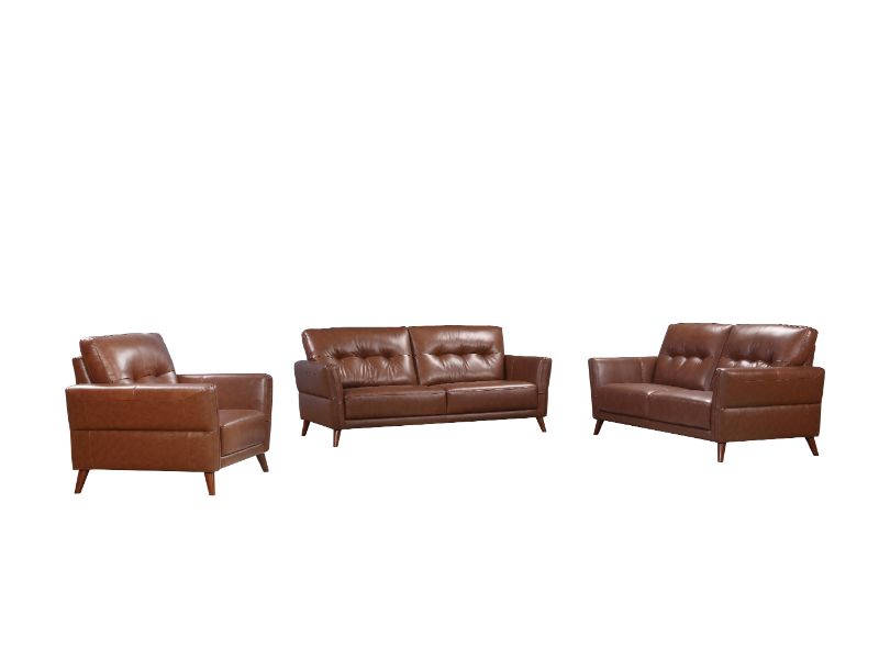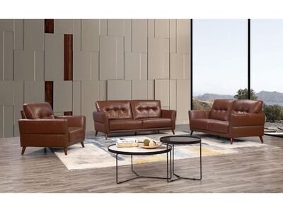 The timeless design of the stunning Capri upholstery collection will bring that much desired statement piece to a decor. Deep filled cushions for ultimate support and comfort and non-buttoned back rests are held off the ground by slender hardwood tapered legs which allude to a feeling of space. The collection is dressed is sumptuous leather/match in two nature inspired shades of Tan and Saddle both brining a richness and warmth into the home.