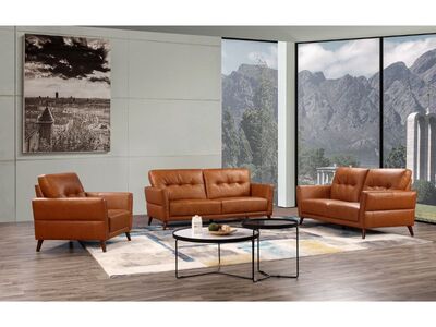 The timeless design of the stunning Capri upholstery collection will bring that much desired statement piece to a decor. Deep filled cushions for ultimate support and comfort and non-buttoned back rests are held off the ground by slender hardwood tapered legs which allude to a feeling of space. The collection is dressed is sumptuous leather/match in two nature inspired shades of Tan and Saddle both brining a richness and warmth into the home.