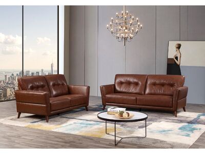 The timeless design of the stunning Capri upholstery collection will bring that much desired statement piece to a decor. Deep filled cushions for ultimate support and comfort and non-buttoned back rests are held off the ground by slender hardwood tapered legs which allude to a feeling of space. The collection is dressed is sumptuous leather/match in two nature inspired shades of Tan and Saddle both brining a richness and warmth into the home.
