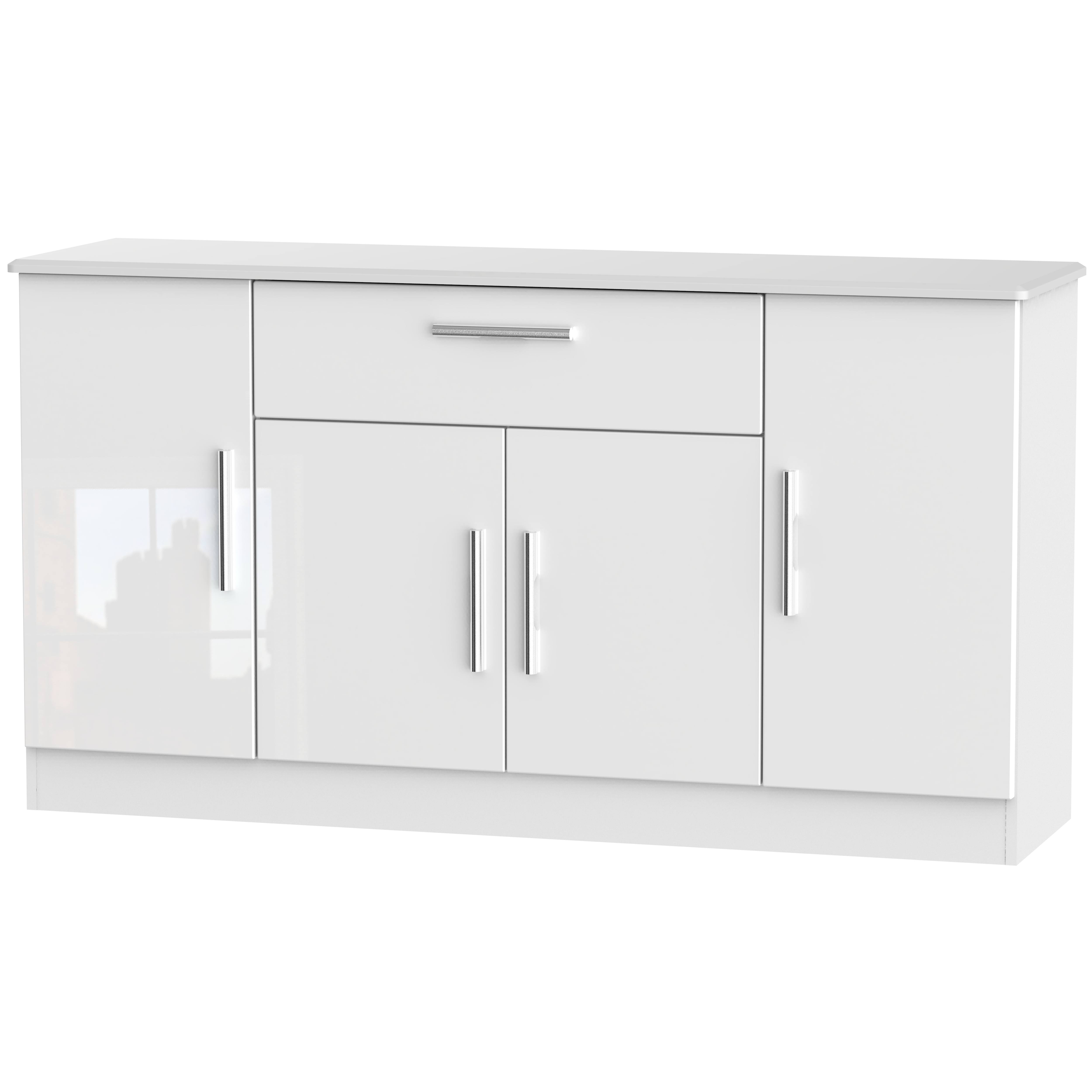 This extra wide storage unit has 2 large storage cupboard, a central cupboard and a single storage drawer making it perfect for any living room, dinning room or louge. Could also be used as a TV/Media stand or side board. Constructed from sturdy materials, this stunning range has been designed with today''s lifestyle in mind. With its clean lines and seductive colour palette, it will add sophistication and contemporary style to your home. All our furniture is made in the United Kingdom, to the highest quality. It is delivered direct to your location of choice by one of our two man delivery teams, and comes fully assembled (although legs may be removed to prevent damage in transit).