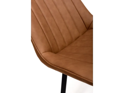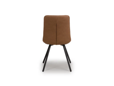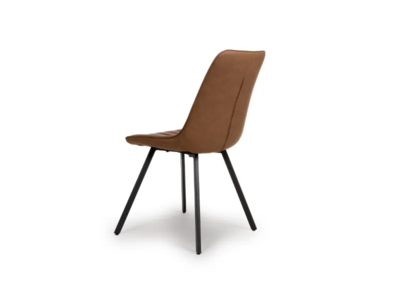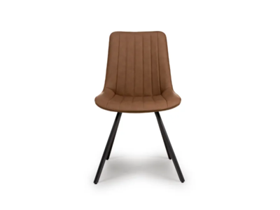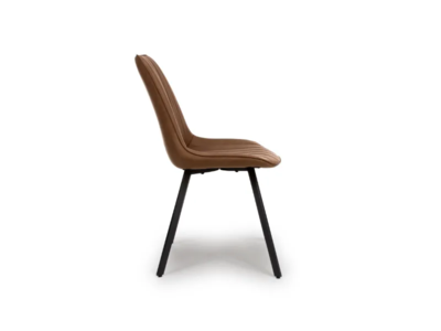 The Miro dining chair is influenced heavily by retro/vintage styling from the continuous seat running into the backrest to the slender tapered black metal legs. This delightful chair is dressed in a durable wipe clean faux leather detailed with tramlines to enhance its warm natural tones of Truffle and Tan which will blend effortlessly with the nature inspired interiors that are currently on trend.