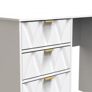 This 4 Drawer Vanity/Desk is equally at home in the bedroom or the office. Say hello to contemporary cool with the Diamond range, with distinctive patterned drawers and a variety of colour options available to compliment any interior design. Gold metal handles and sturdy hairpin legs complete the storage solution. All our furniture is made in the United Kingdom, to the highest quality. It is delivered direct to your location of choice by one of our two man delivery teams, and comes fully assembled (although legs may be removed to prevent damage in transit).