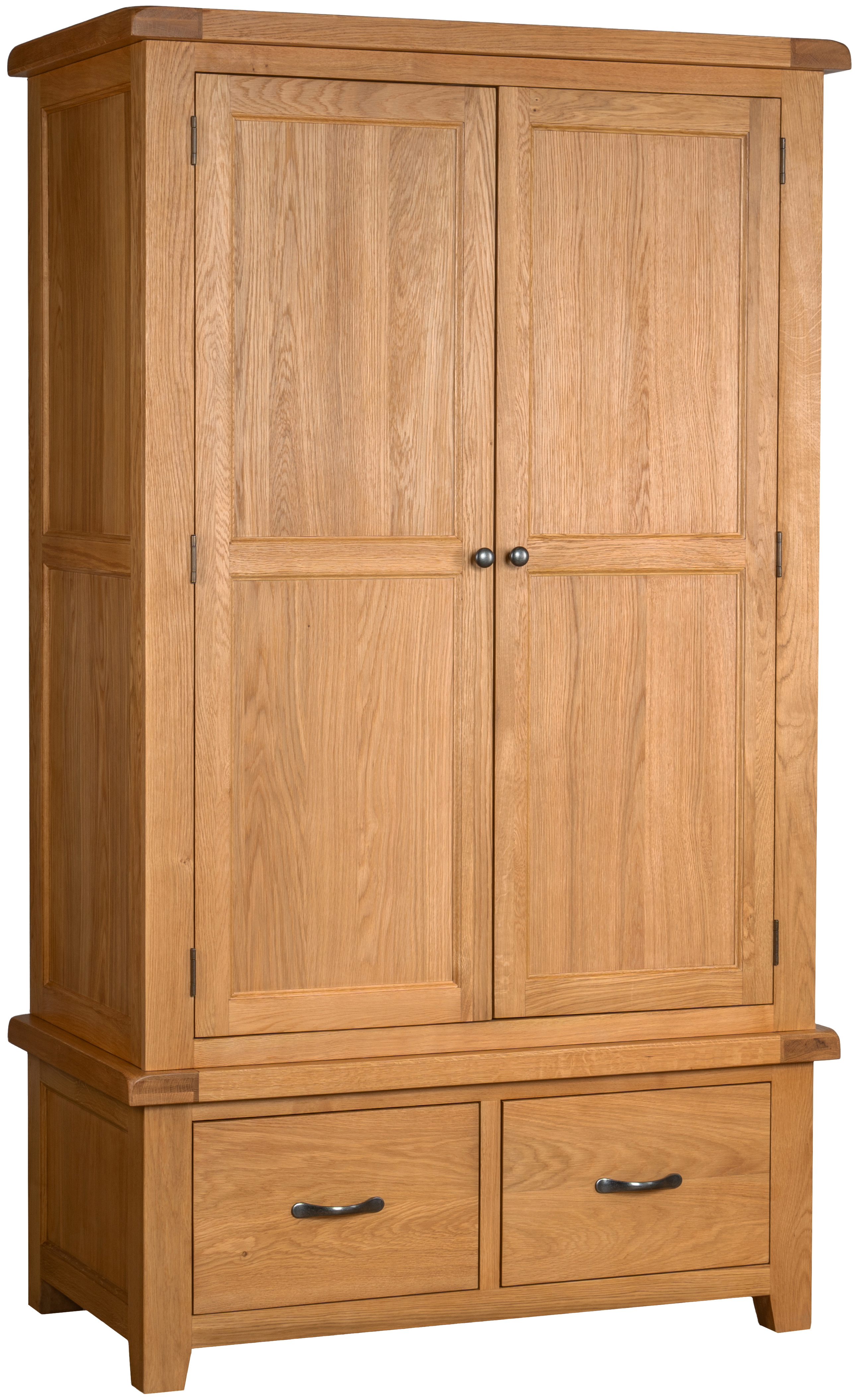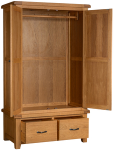 This wardrobe features a double sized all-hanging section with one hanging rail, as well as two spacious drawers for additional storage.