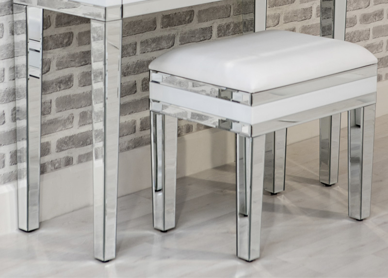 Add a hint of decadence to your scheme with the addition of the versatile Liberty range of white gloss and mirrored pieces. Attention to detail has been paramount in the design and construction of these stunning pieces with the inclusion of bevelled edges, crystal handles and glass tops for durability. A delightful 2 drawer desk makes a great work station. It is a must for those who like to keep their rooms light, airy and extremely glamourous.