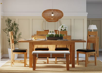 Our most popular sized extending dining table comfortably sits 6 people when extended from 132cm to 198cm. With a traditional design this table is the perfect place to entertain and bring the family together. This table extends via a central runner system and comes with two leaves (stored internally) which clip in to place, so you can extend using one or both for two extension size options (165cm or 198cm).