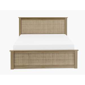 Stylish rattan headboard and footboard complement the contemporary minimalist aesthetic.