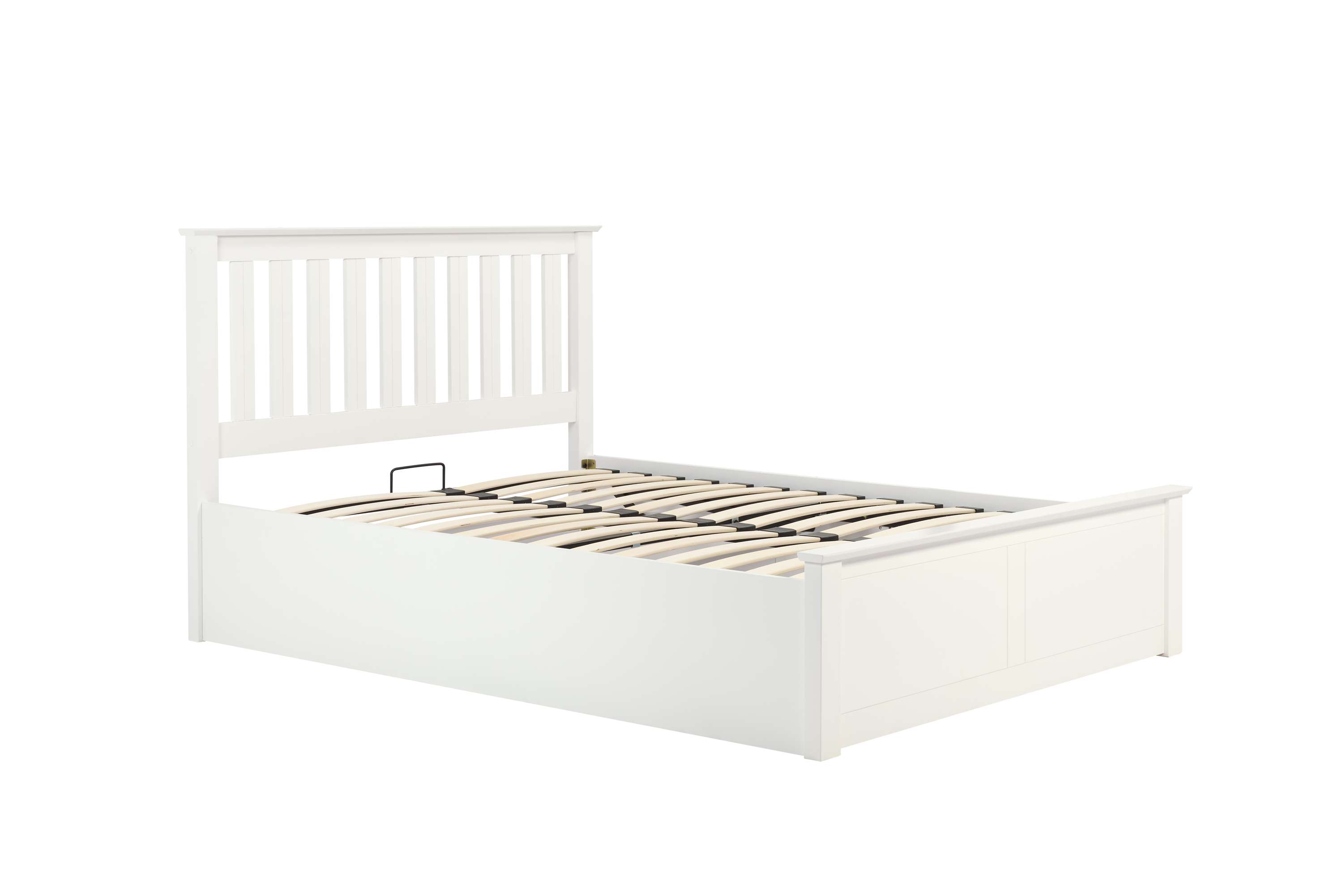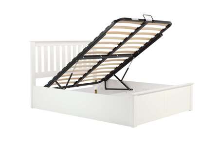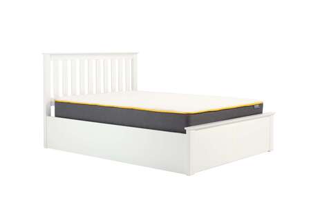 One of the highest quality finishes in the range, the Phoenix wooden Ottoman bed provides both class and practicality, with an opening base that provides plenty of storage. The bed is available in navy blue, pearl grey, stone grey, oak or white. Constructed from solid rubberwood, the oak option has MDF veneered side rails whereas the white option features MDF Melamine side rails. This frame has a sprung slatted base to give natural bounce, adjusting to where pressure is most exerted to provide greater comfort. A protective base board is also included. The gas piston strength on this frame is 588 N. The maximum weight load for the Phoenix Ottoman frame is 350 kg. Please note the mattress needs to be on the bed for the pistons to work. Birlea beds are only suitable for a UK standard size mattress and the recommended maximum mattress height is 203 mm.