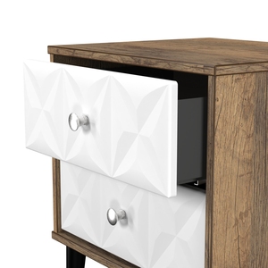This 2 drawer bedside cabinet is practical and stylish. Perfect for any bedside or as a free standing storage unit. A modern and distinctive range. Named for the unique "Pixel" patten of the drawer and door fronts. Also features Black Metal Handles and Black Hairpin Legs. Comes in a wide range of colours including eye cathching two tone colour combinations. All our furniture is made in the United Kingdom, to the highest quality. It is delivered direct to your location of choice by one of our two man delivery teams, and comes fully assembled (although legs may be removed to prevent damage in transit).