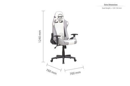 Featuring a stormtrooper head as a headrest, and a fully adjustable, swivel and lock mechanism seat which offers enhanced support and stability during those longer, hard-core gaming sessions.