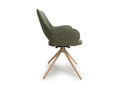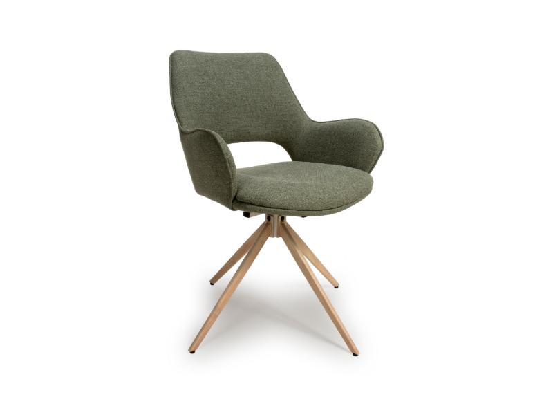 The Perth dining chairs are a must for those with a keen eye for design and detail. Cool sleek lines bring together comfort, action and strength. Dressed beautifully with an Easy Clean fabric this collection is practical too. Comfort is achieved through the gentle padding throughout these stunning chairs, Action is provided by the swivel base and strength comes from its metal base designed to look like wood.