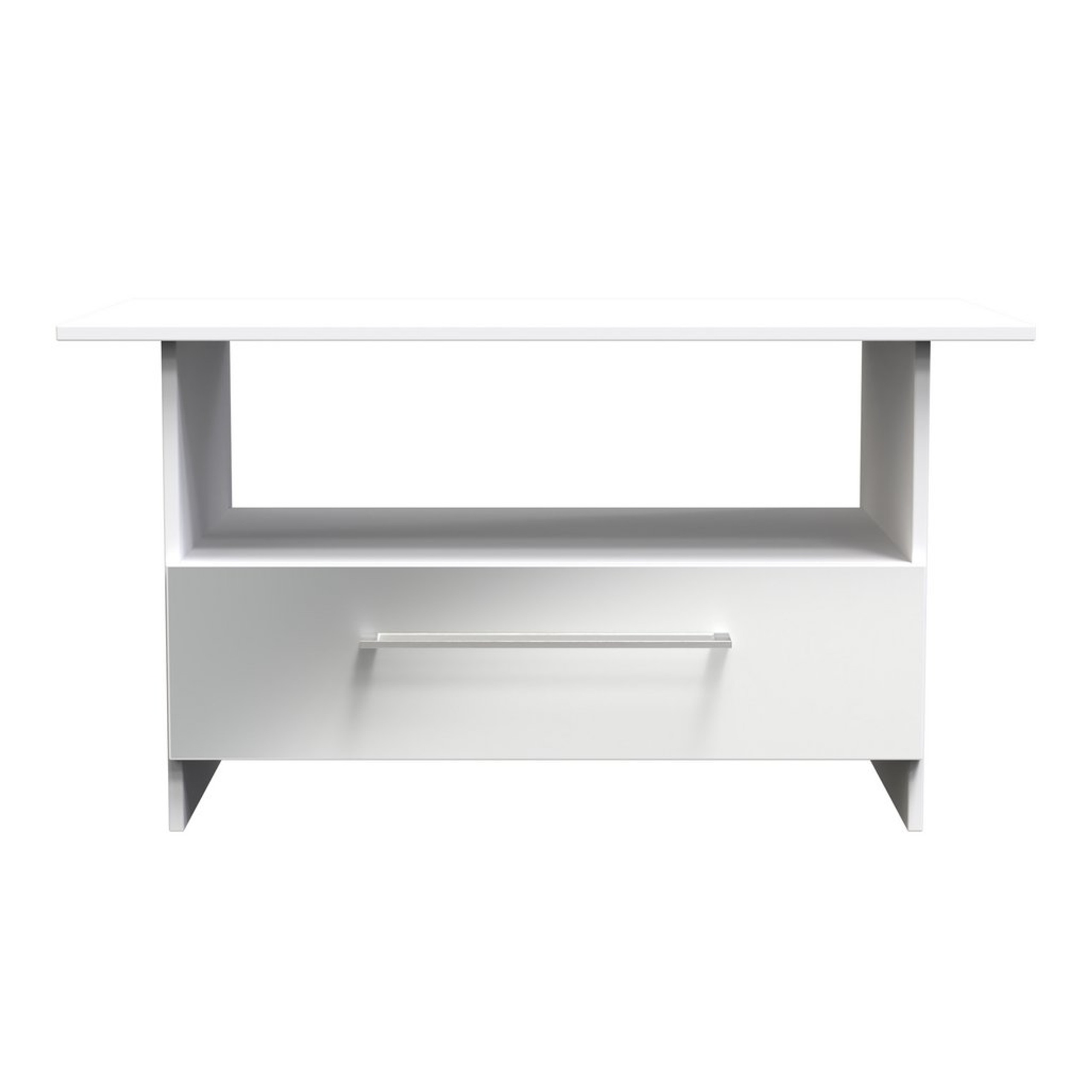 This stylish Coffe Table includes a full width storage drawer and is perfect for any room. A elegant modern range, with solid metal pull bar handles and comes in a range of scratch resistant gloss or matt finishes. All our furniture is made in the United Kingdom, to the highest quality. It is delivered direct to your location of choice by one of our two man delivery teams, and comes fully assembled (although legs may be removed to prevent damage in transit).